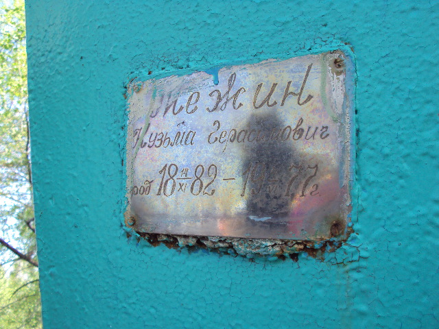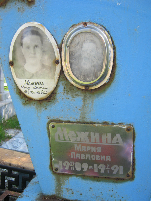Межин Виктор Анатольевич похоронен по документам (Св. о смерти) Межиной Веры Ефимовны, но не рядом, а где-то в другом месте. Подобная ситуация с Межиной Лией Андреевной. Их могилы не обнаружены в натуральном виде, а внесены в список Некрополя из документов УГХ.