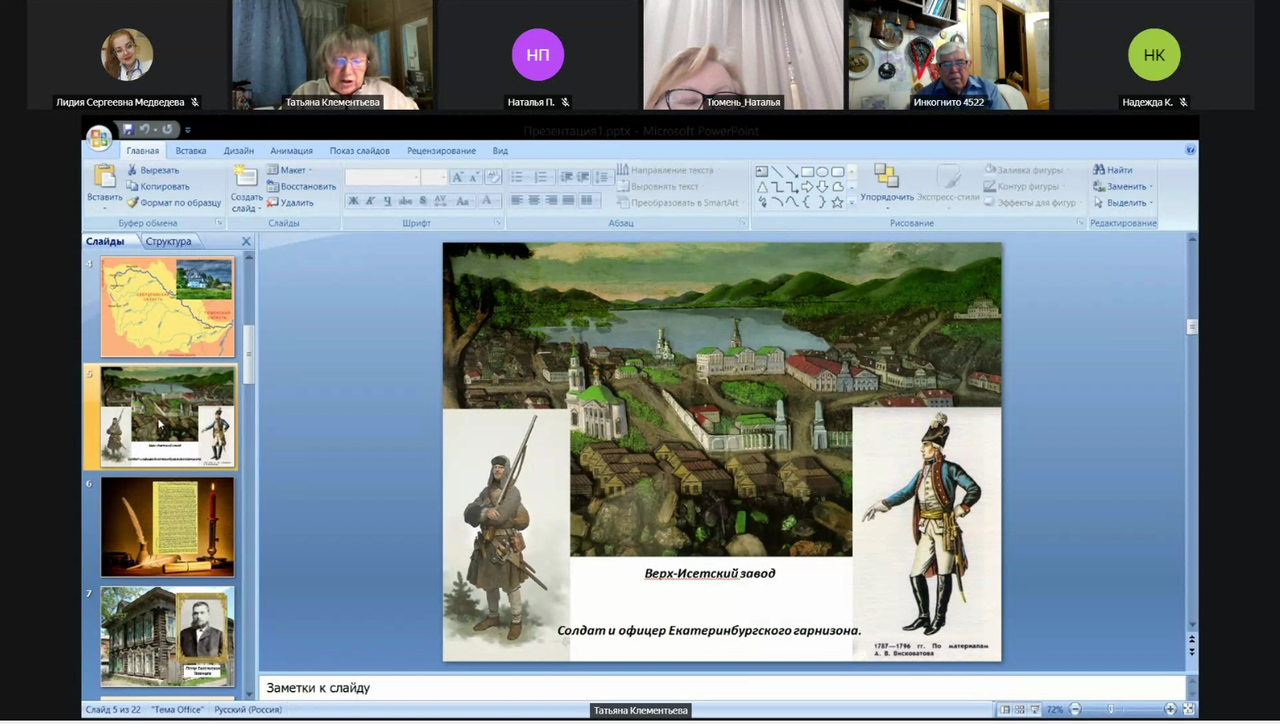 Замечательно работает ИРО "Старый Соболь". Николай Васильевич Бороздин - истинный подвижник своего дела. Алёна Олеговна Фурсаева активно его поддерживает. Общество проводит встречи на платформе "Яндекс-телемост" 1-2 раза в неделю. По воскресеньям, как правило, бывает несколько докладов с презентациями. Всё очень интересно. Тематика докладов разная - родоведение и краеведение. Благодаря такому необычному режиму работы удаётся встречаться людям из очень разных, сильно отдалённых географических точек. Это Верхний Тагил, Верх-Нейвинский, Новоуральск, Рязань, Невьянск, Челябинск, Реж. За последний год удалось услышать интересные доклады, авторами которых были Бороздин Николай Васильевич, Клементьева Татьяна Петровна, Щербина Денис Евгеньевич, Сергеева Мария Викторовна, Пономарёв Николай Яковлевич, Гаренских Эдуард Анатольевич и другие. Два раза приглашали выступить и меня. Я рада была участвовать. Атмосфера очень тёплая, слушатели благодарные.