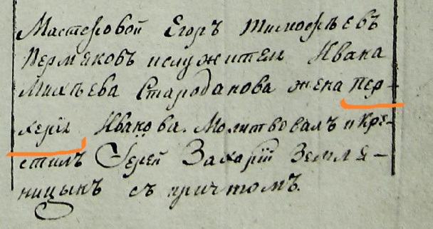 В метрических книгах Вознесенской церкви встретились имена у девочек КАЛЛИСФЕНИЯ, ДУКЛИДА у мальчиков КЕСАРИЙ, ДОРОФЕЙ